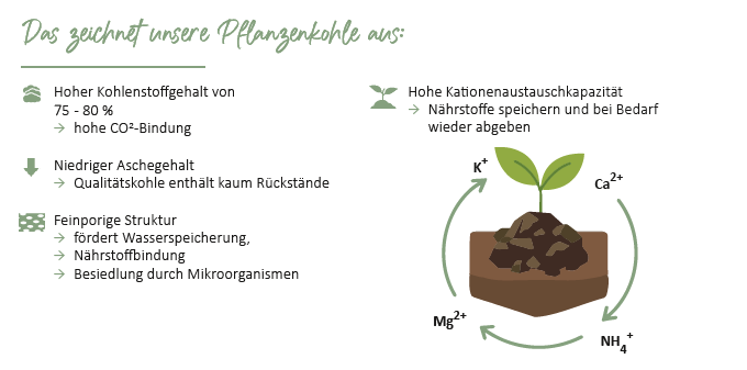 Pflanzenkohle ist ein natürlicher Bodenverbesserer, der Nährstoffe und Wasser speichert, die Bodenstruktur verbessert und das Bodenleben aktiviert. Sie eignet sich für viele Anwendungsbereiche – von kleinen Balkonkübeln über Hochbeete auf der Terrasse bis hin zum klassischen Garten. Auch im professionellen Garten- und Landschaftsbau sowie in der Landwirtschaft kommt Pflanzenkohle zunehmend zum Einsatz. Ob Zierpflanzen,Gemüseanbau oder großflächige Bodenaufwertung: Pflanzenkohle unterstützt ein gesundesWachstum, fördert die Humusbildungund bindet dauerhaft CO₂ – ein echter Gewinn für Boden und Klima.